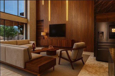 • Detalles en lambrín de madera en muros y plafones de áreas sociales