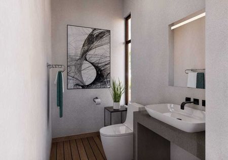 con el entorno natural. Cuenta con 2 habitaciones, cada una con baño completo y vestidor, proporcionando privacidad y